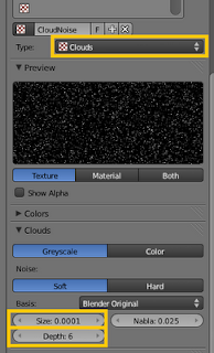 Next create a new texture. In this case, I used the Clouds texture built in and set the following parameters.